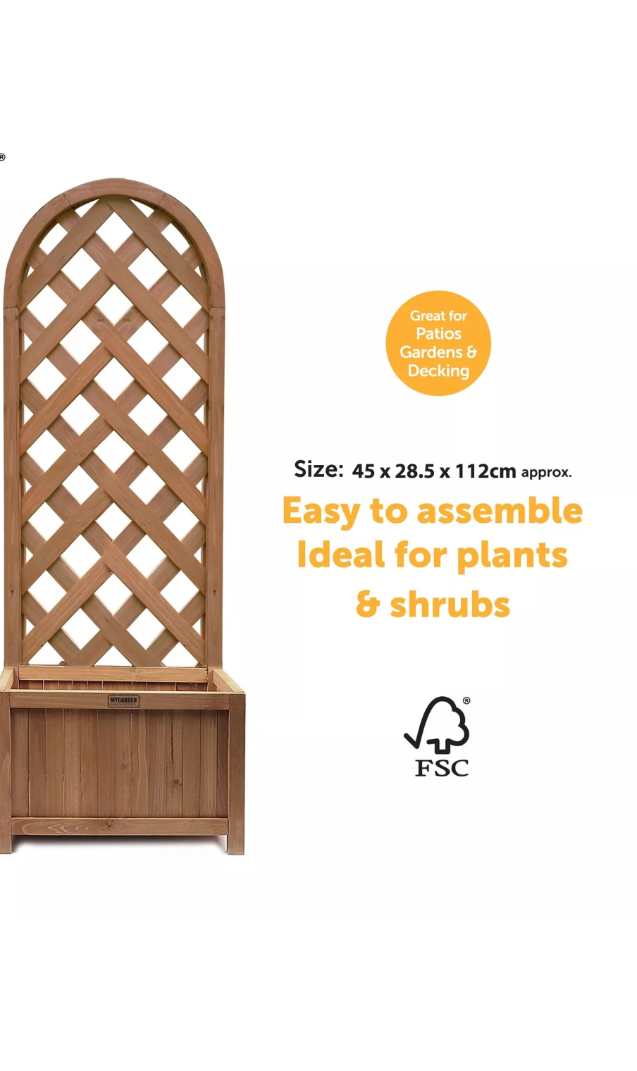 – Enhance your garden or patio with our elegant wooden planter featuring a lattice trellis in a graceful arch shape.